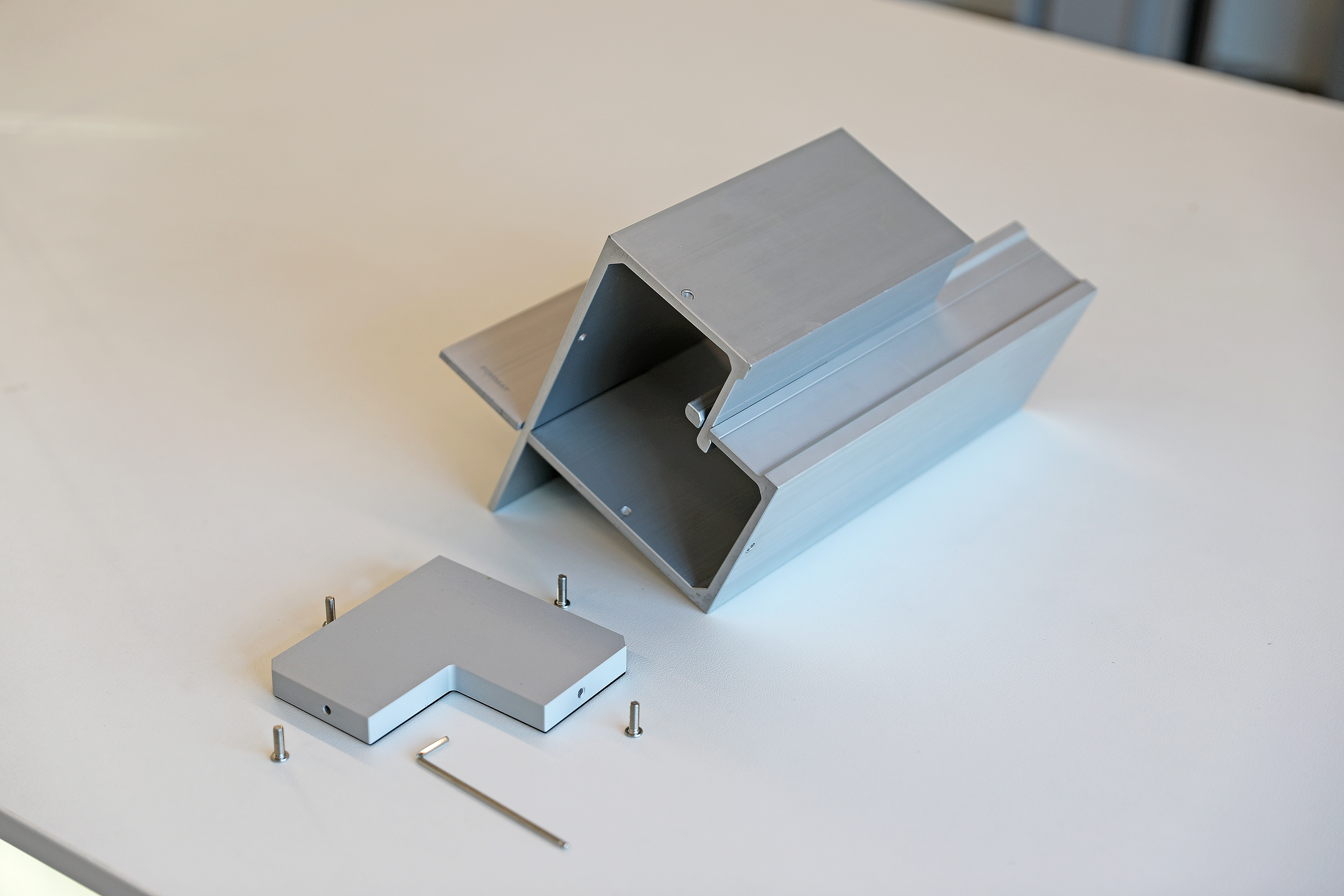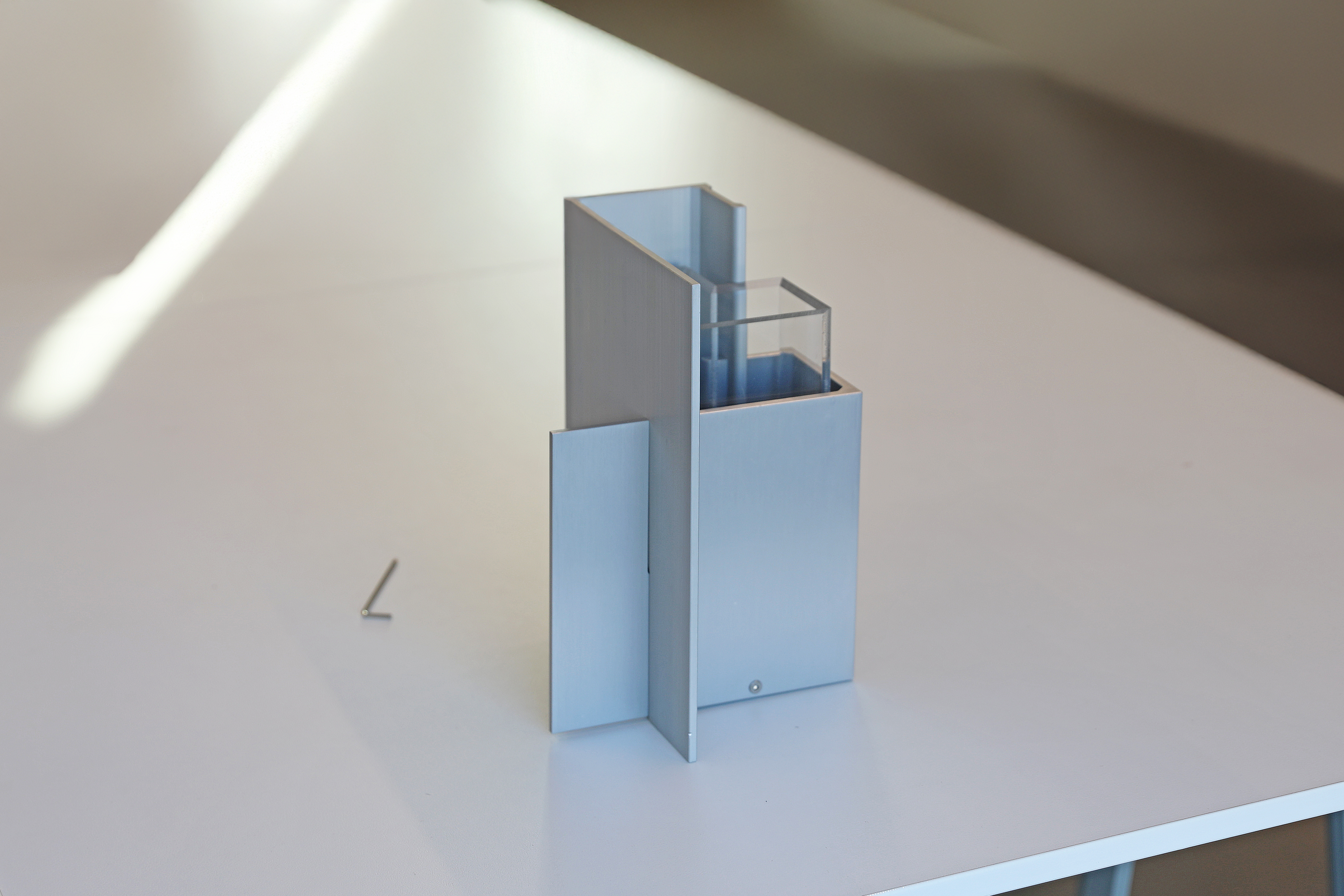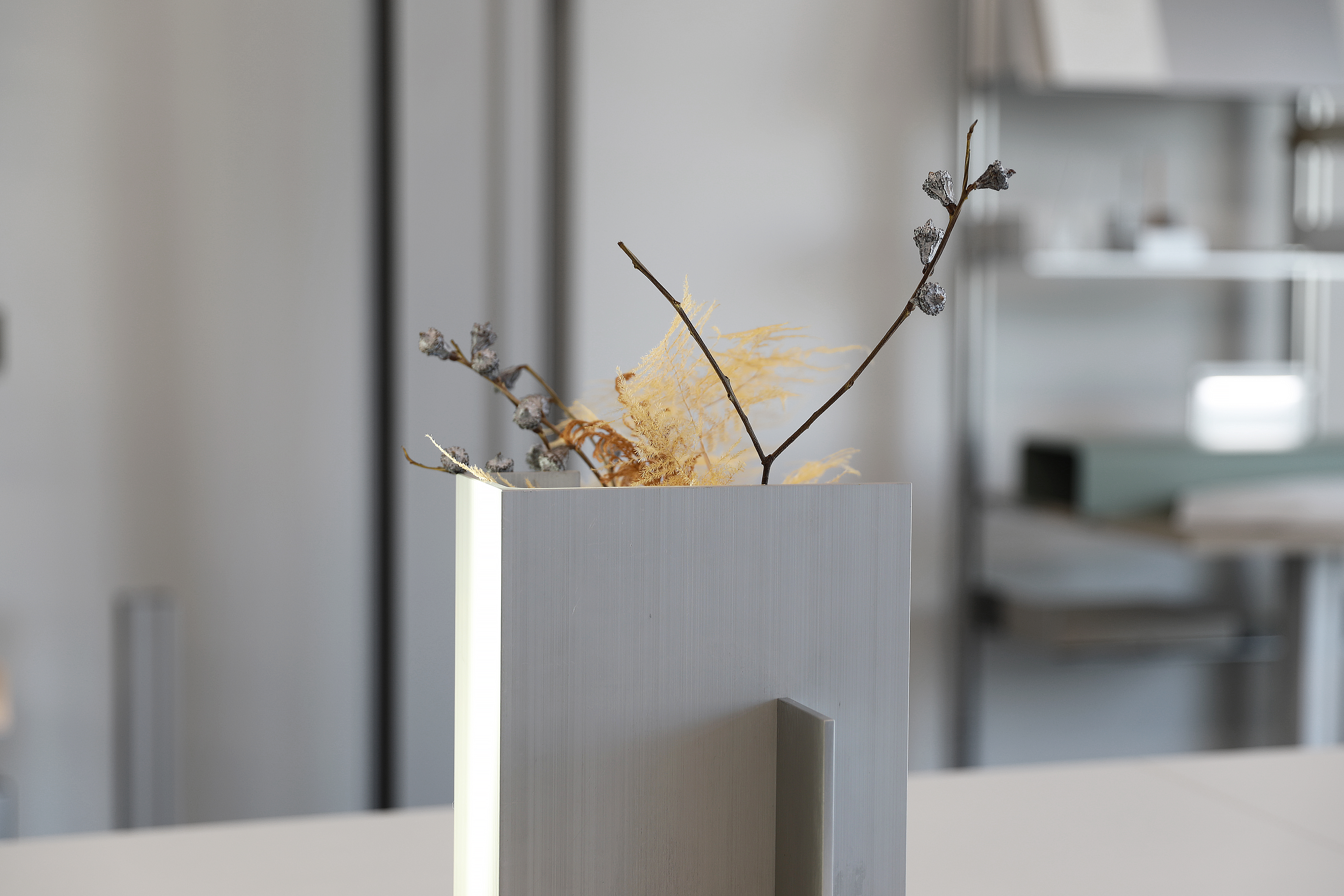 The second product in the collection is a vase. Standardized formwork components are disassembled into smaller units, cut, and reassembled into a new structure to create a single vase object. Through this process, heavy construction hardware is transformed into an interior object suited to everyday living. Traces of industrial use are not concealed but carefully refined within a restrained form, allowing the material’s previous context to remain visible.
